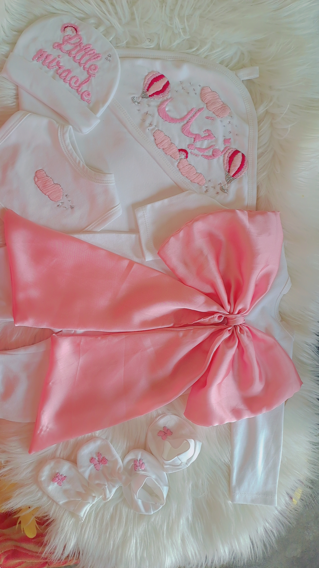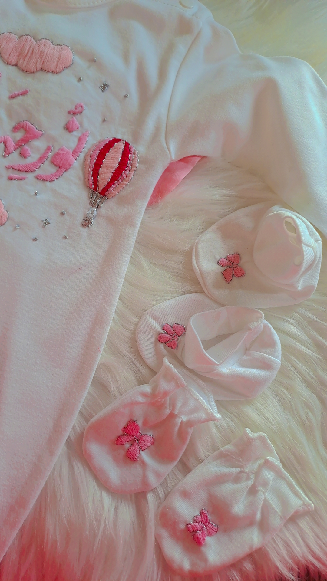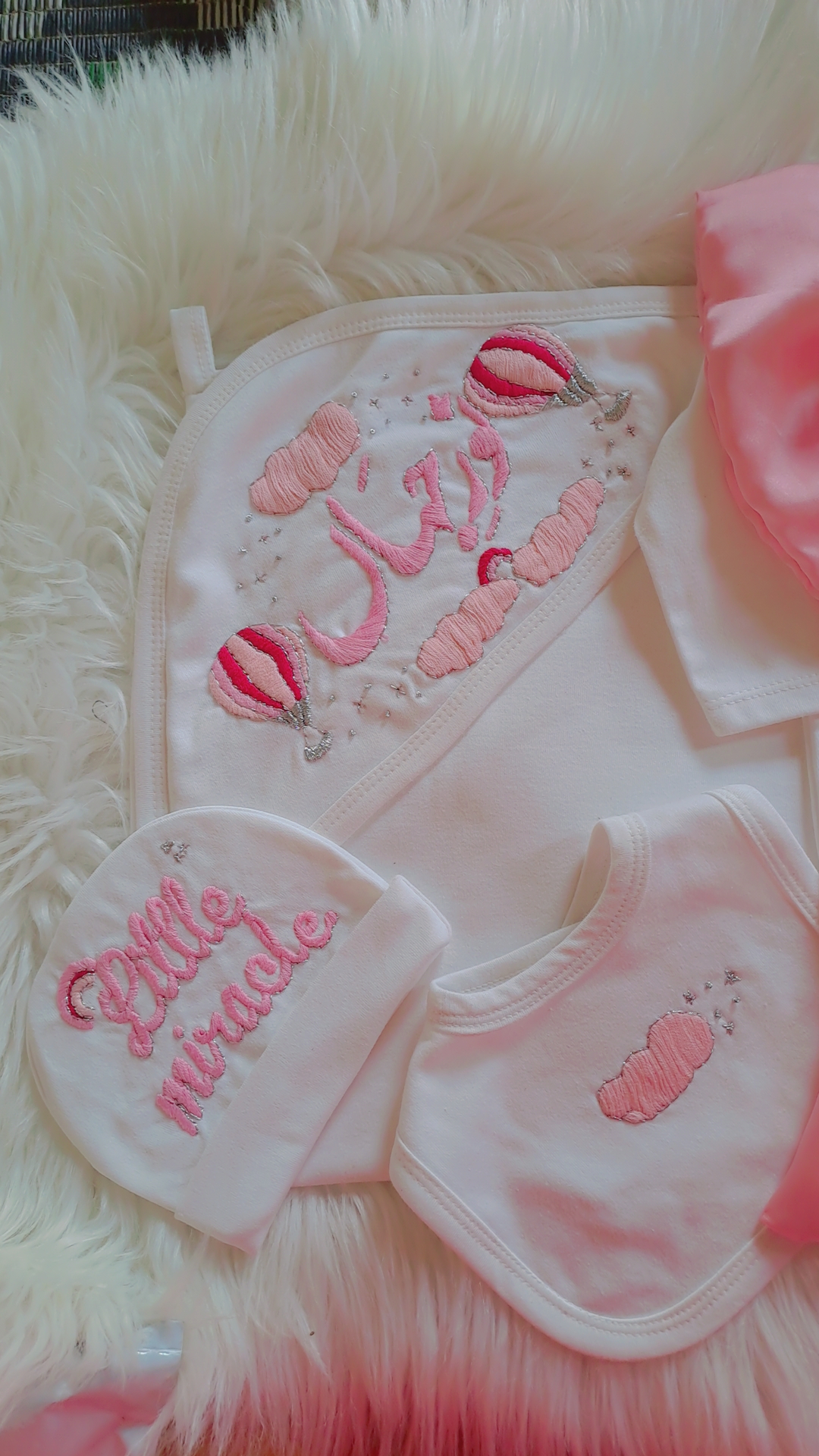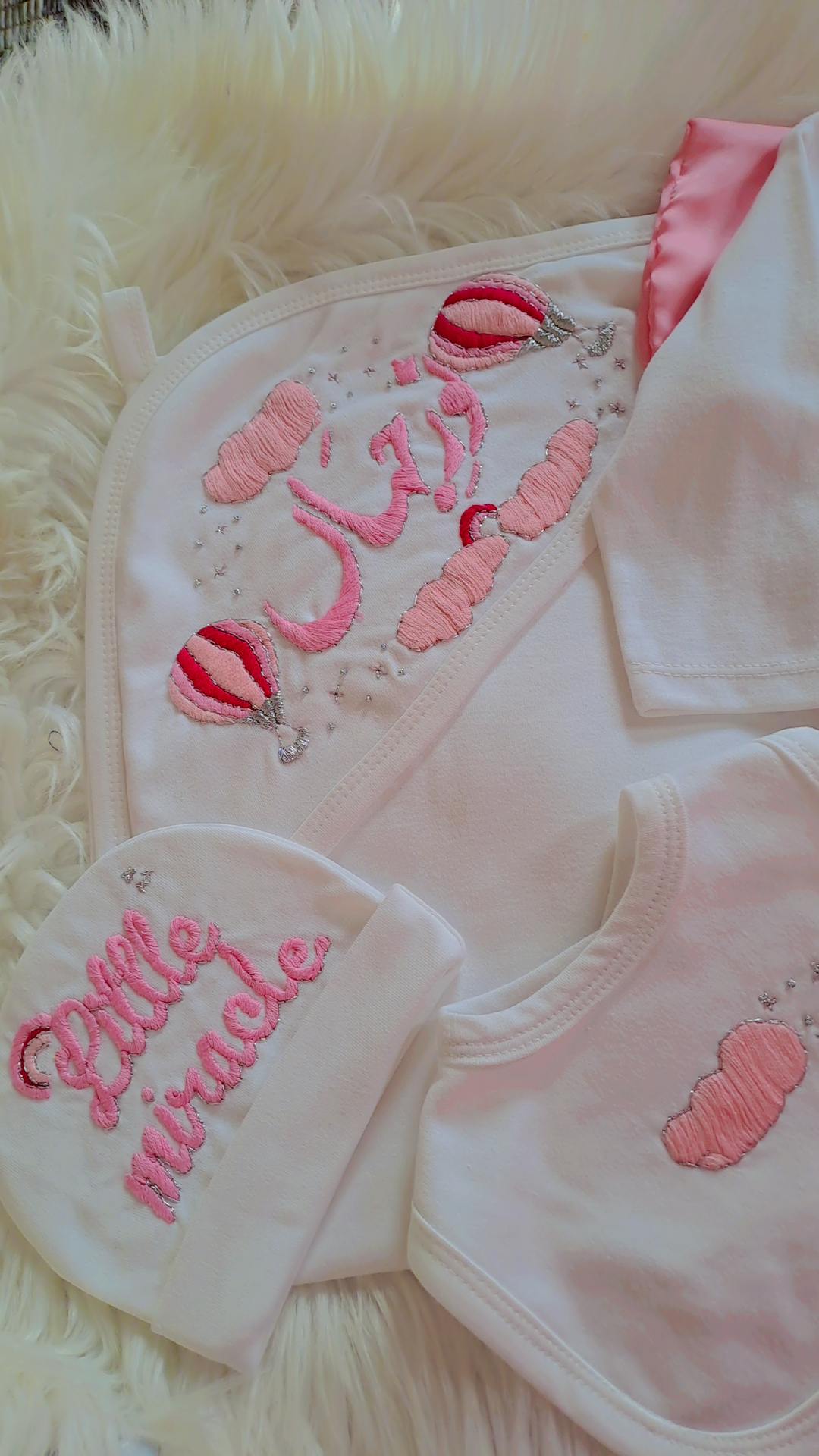 Make your little princess’s arrival truly special with our exquisite hand-embroidered starter pack, featuring a hot air balloon theme in soft pink!Ā