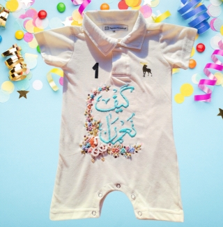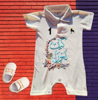 Hand Embroidered Polo Romper For New Born Baby High Quality Soft Blended Cotton Fabric